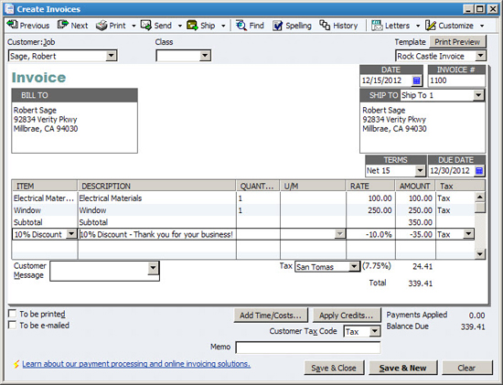 However, if you do offer a discount, don't just type over your standard prices on the QuickBooks invoice, create a discount calculation instead. This accomplishes two things: