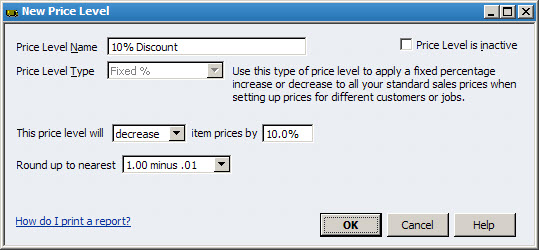 In such cases, you might find the price level feature helpful, so that you don’t have to remember to include a discount item on each invoice: