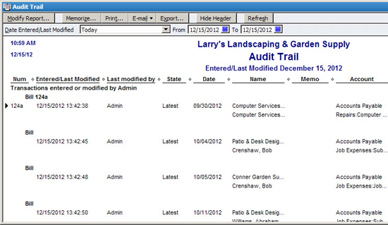 You can use this report to determine if anyone has made changes to transactions subsequent to you specifying a closing date in the QuickBooks preferences. To do so, choose Edit, and then Preferences. Next, choose Accounting, and then Company Preferences.
