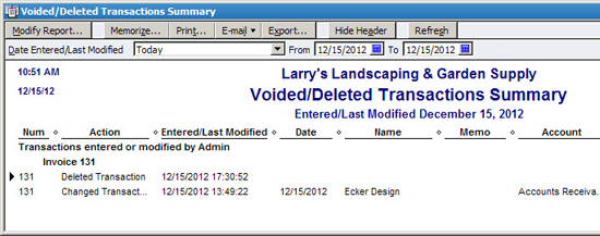 - Select either the Voided/Deleted Transactions Summary or Detail reports. Both provide basically the same information, but the Detail report includes the entire transaction, rather than just the top level information shown in Figure 5.