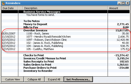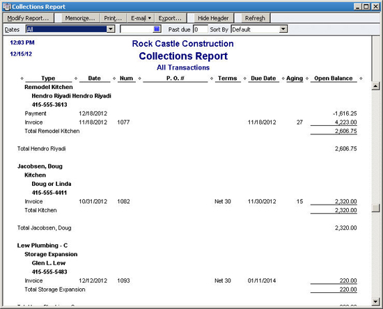 As shown in Figure 8, the Collections Report now displays all open invoices. You can click the Memorize button to save this report for future use.