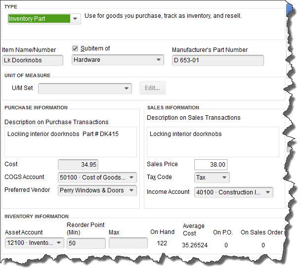 Now you can start entering records for the products you sell. Accuracy is absolutely essential here. You will see why as you explore QuickBooks' tracking capabilities.