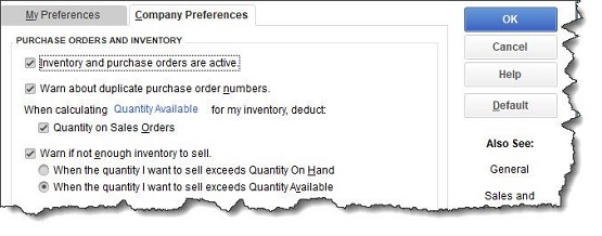 Figure 1: QuickBooks has several options for dealing with inventory. You should check your Preferences before you start entering sales.