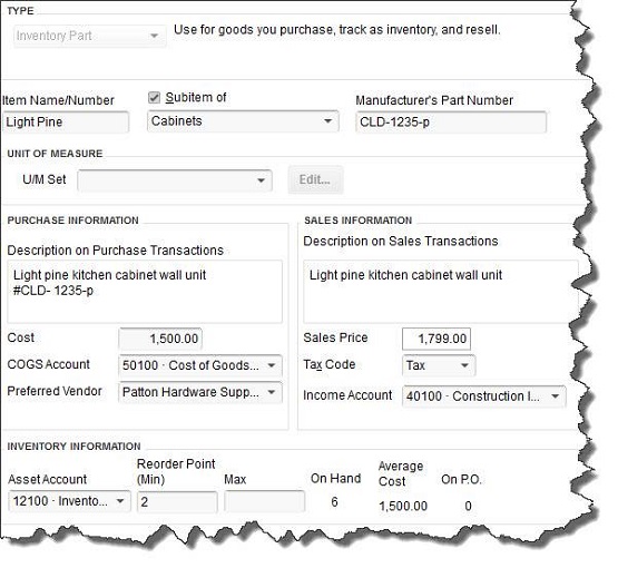 Whether you’re selling one-of-a-kind items or stocking dozens of the same kinds of products, you need to create records for each. When it comes time to create invoices or sales receipts, your careful work defining each type of item will: