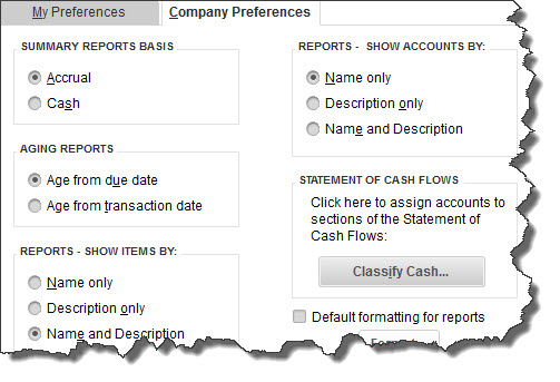 For other preferences, you may need help. For example, do you understand the difference between running Summary Reports as Accrual or Cash? And have you worked with a Statement of Cash Flows before so you can assign accounts to various sections? This is a report the office should be generating and analyzing periodically for you, so don't worry about dealing with it on your own.
