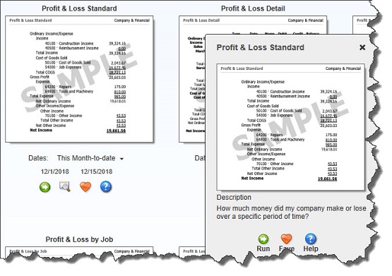 The first of these is fairly clear. You can understand what many reports do by their titles, their content, and the descriptions QuickBooks offers. We recommend that you spend some time looking at the Report Center in QuickBooks to familiarize yourself with your options.