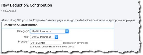 Open the Vacation and Sick Leave Policies window. If you do not yet have accrual rules for these paid days off, let us help you here. It is complicated. When you are done, click the back arrow to return to the Pay Policies window and select Deductions/Contributions. Are you offering benefits like health insurance? You will need to have your paperwork and information handy before you start completing this section.