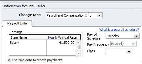 Tip: If you want to use payroll to pay employees for time worked, be sure to check the box labeled "Use time data to create paychecks" when you're building employee records, as shown in Figure 2.