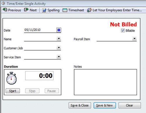 You can also use QuickBooks's timer if you're going to bill for a timed activity such as a phone call. And you can add notes that will be saved to the ticket.