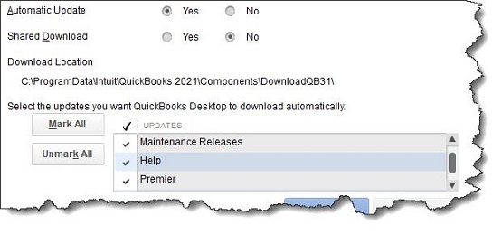 QuickBooks' updates are critical, too. You can start these manually, but we recommend setting up automatic updates. Open the Help menu and click on Update QuickBooks Desktop. Click the Options tab to access this tool.