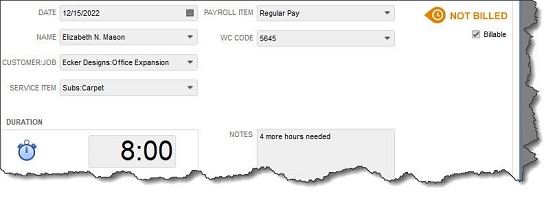 Creating time entries isn't difficult, but it can be time-consuming if you have a lot of employees being paid by the hour. Next month, the topic will be the QuickBooks' Timesheet features well as how to get information about the time entries you've created and what to do if QuickBooks' time-tracking isn't robust enough to meet your needs. In the meantime, don't hesitate to call if you need help with QuickBooks or your accounting in general.