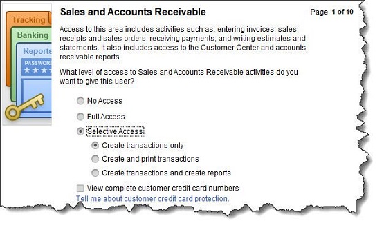 Figure 1: You can restrict QuickBooks users to certain screens and activities.
