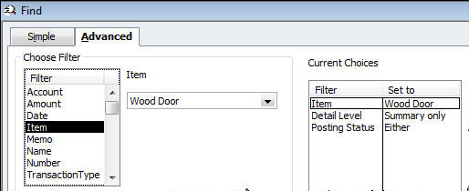 Figure 4: You can easily find items in memorized transactions using the Find tool.