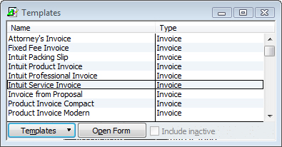 To get started, click Lists/Templates. (In Simple Start, open a new invoice and click Customize/Manage Templates.) The window shown in Figure 1 opens. As you can see, QuickBooks already provides multiple versions of some forms. Take a look at these before you do any modifying to see if one will meet your needs.
