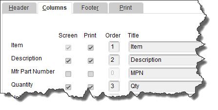 You'll notice that you can have specific fields appear on the screen and/or on printed copies of your estimates. You can also change the field names (use Bid or Proposal instead of Estimate, for example), and for columns only, the order in which they appear.