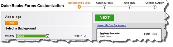 - Customize Design. This opens a multi-step wizard that helps you select a background, font, and grid style.