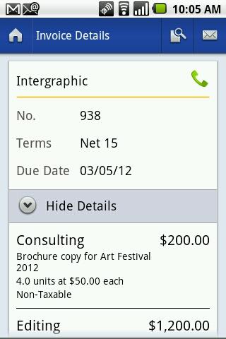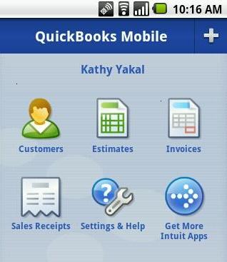 Figure 1: QuickBooks Mobile, shown here on the Android operating system, gives you sales tools when you’re away from desktop QuickBooks.