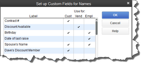 That's where custom fields come in. You can simply use them for your own informational purposes, but QuickBooks also lets you create and add fields to your existing customer, vendor, employee and item records and forms, and use them as filters in reports.