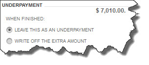 Any outstanding invoices will appear in a table. Make sure that there's a check mark in front of the correct one(s). If the customer only made a partial payment, you'll have to indicate how you want to handle the underpayment. Here are your options:
