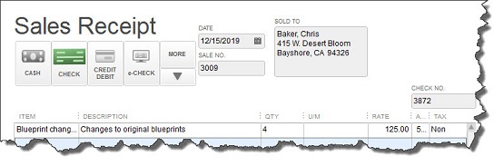 You'll also use the Receive Payments window to record down payments and overpayments. And there are situations where you'll have to complete other forms to document the incoming money. For example, if a customer makes a partial payment for products or services that haven't yet been invoiced, you'd use a Payment Item. A customer who pays for a product at the time it is received would get a Sales Receipt.
