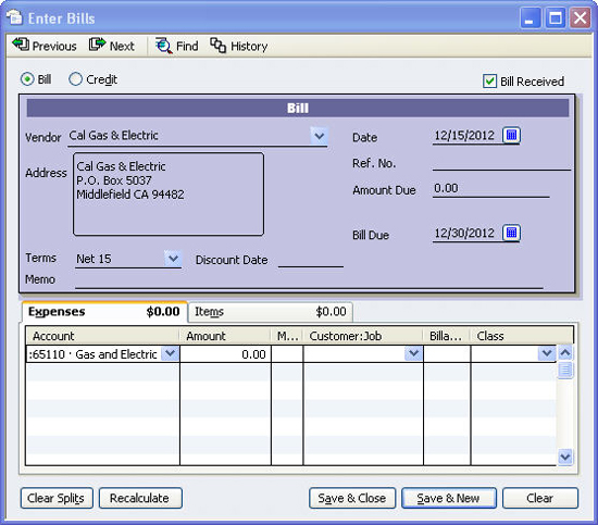 • How often do you pay this bill? Generally, it will be monthly, but QuickBooks gives you several options.