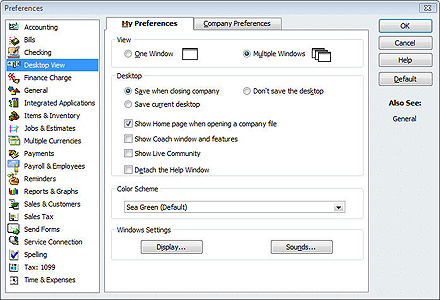 There are other desktop-related options in this same window that have to do with QuickBooks' help features. You may also want to adjust these if you commonly use those services.