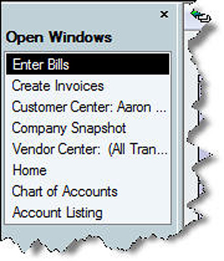 If you've chosen to have multiple windows open simultaneously, you can easily keep track of what's open-and navigate there quickly-by using the Open Windows list. To get there, click View | Open Window List. QuickBooks will open the sidebar shown in Figure 3. This list appears to the left of the main desktop or any open windows. To close it, simply click View, then uncheck Open Window List.