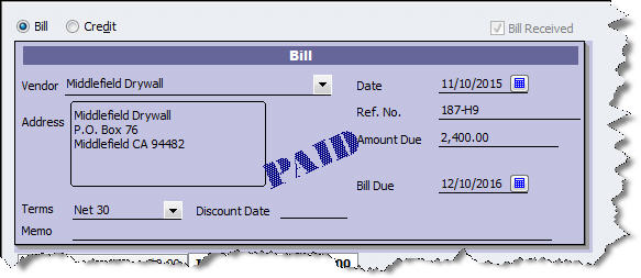 Figure 4: QuickBooks displays the Paid status of bills.
