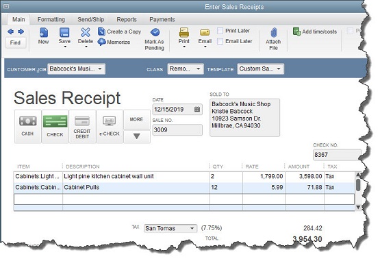 Figure 2: QuickBooks provides tools for customizing forms, including sales receipts.