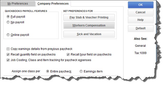 Figure 1: The Company Preferences screen in Payroll & Employees Preferences