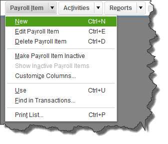 Figure 2: You can access this menu from the bottom of the Payroll Item List screen.